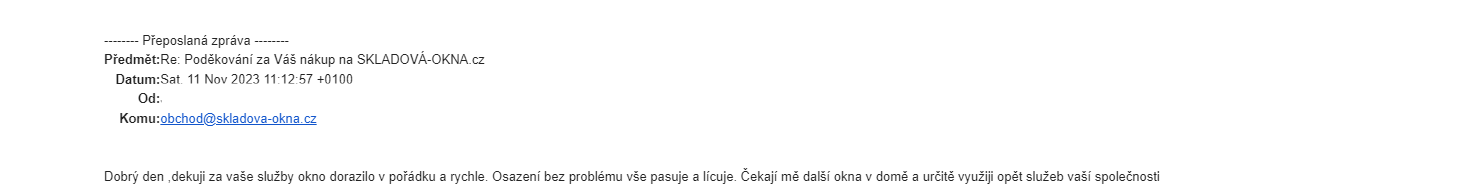 Dobrý deň , ďakujem za vaše služby okno dorazilo v poriadku a rýchlo. Montáž bez problémov všetko sedí a pasuje. Mám v dome aj iné okná a určite využijem vašu firmu znova.