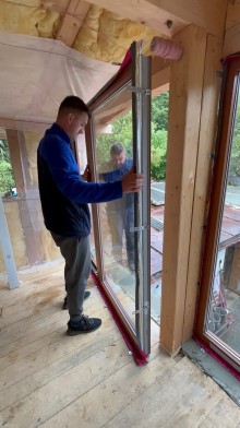 Manželé Hlaváčkovi potřebovali okna do ložnice, kterou přestavovali z nevyužitého půdního prostoru nad garáží. Kvůli ceně zvolili řešení svépomocí. Objednali si u nás přes online konfigurátor jednokřídlé okno a dvě sestavy skládající se z fixního okna a balkonových dveří. Vše s dvojsklem a v dřevodekoru streifen douglasie. Rovnou si také přikoupili montážní materiál a vnější paropropustné a vnitřní parotěsné pásky, které eliminují, aby se do připojovací spáry dostala vlhkost. Díky blízkosti skladu v Kuřimi si okna osobně vyzvedli a montáž zvládli sami s pomocí videonávodu. Ložnici si zařídili v boho stylu a už plánují, že se pustí do stavby tiny house.