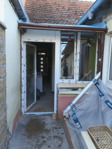 Zákazník si u nás objednal balkonovou sestavu, kterou si sám navrhl v našem konfigurátoru. Sestava zahrnuje dvoukřídlé plastové okno a balkonové dveře s levým otevíráním. Levé křídlo okna je fixní, pravé nabízí sklopnou funkci pro větrání. Celá sestava je vyrobena v profilu Rehau Smartline + Classic v bílé barvě z obou stran, aby ladila s celkovým vzhledem stavby.