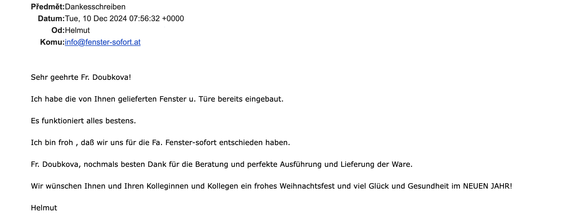 Jsem rád, že jsme se rozhodli pro Fenster-sofort.