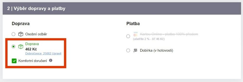 Příplatek za službu Komfortní doručení (připočítává se k dopravě, cena je bez DPH):
