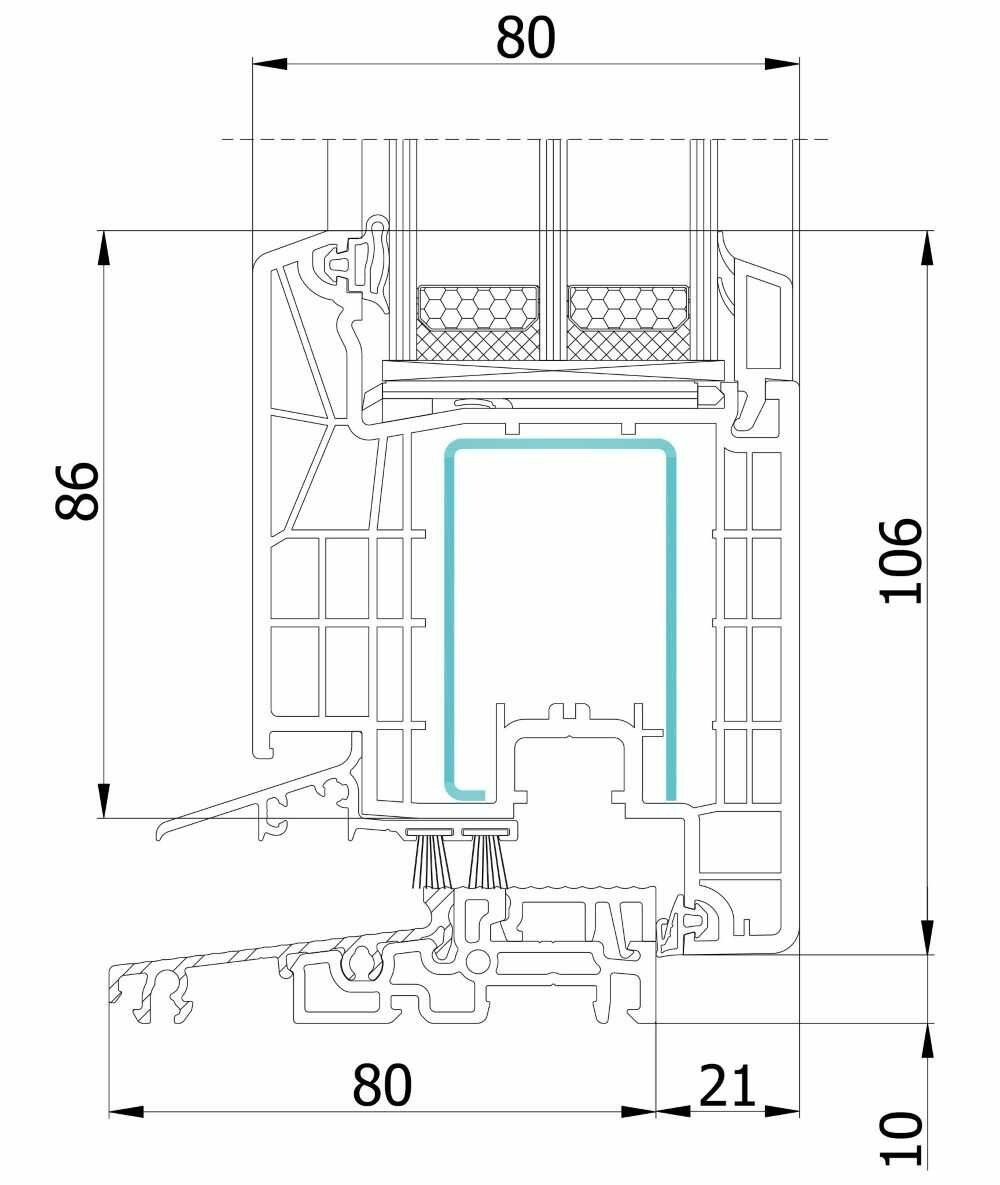 Stavební hloubka 80 mm (vyšší statická pevnost). V rámech i křídlech jsou celoobvodové pozinkované výztuže odolné proti korozi.