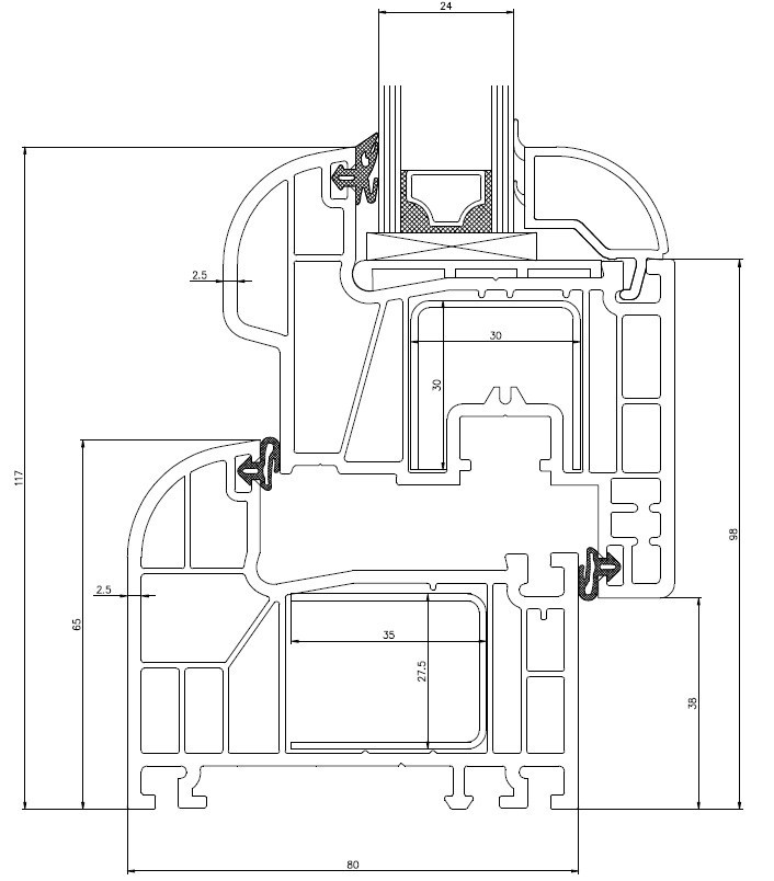 - Pozinkované ocelové výztuhy zajišťují tuhost a stabilitu oken.