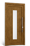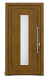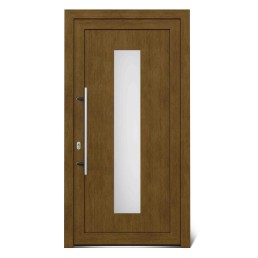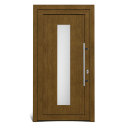 I za nižší cenu si můžete dopřát krásné a moderní vchodové dveře. Výplň křídla tvoří panel o tloušťce 36 mm (2 HPL desky o tloušťce 2 mm + mezi nimi je 32 mm silná polyuretanová pěna) a pískované dvojsklo.