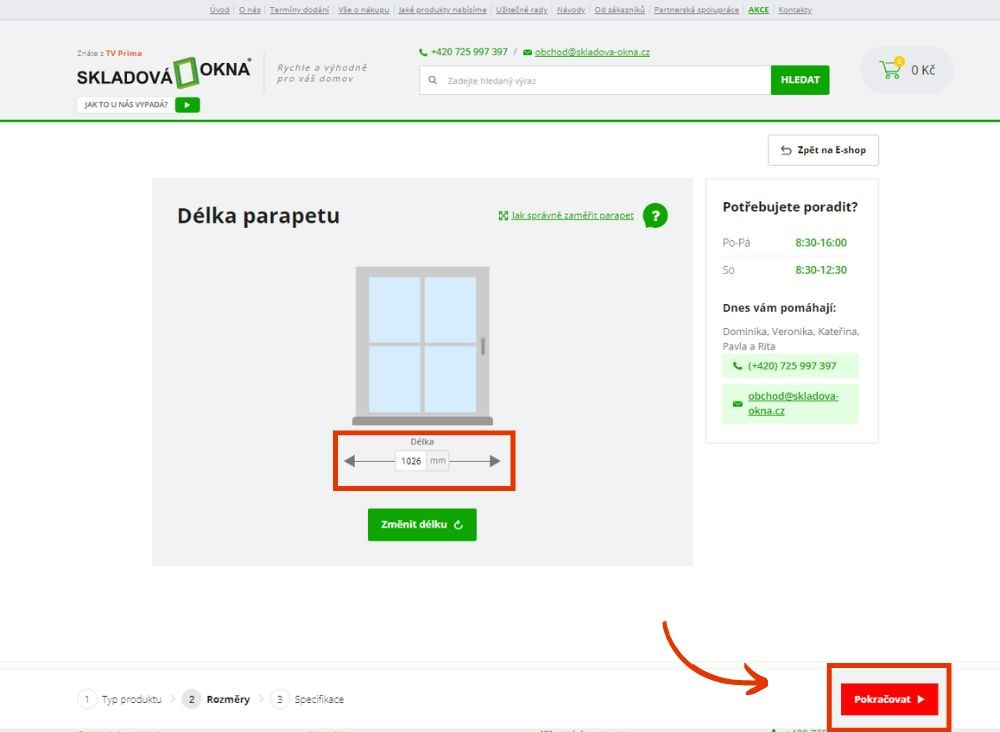 4. Do políčka pro délku zapište údaj, který jste změřili u vašeho okna. Pokud nevíte, jak parapet zaměřit, koukněte na videonávod.