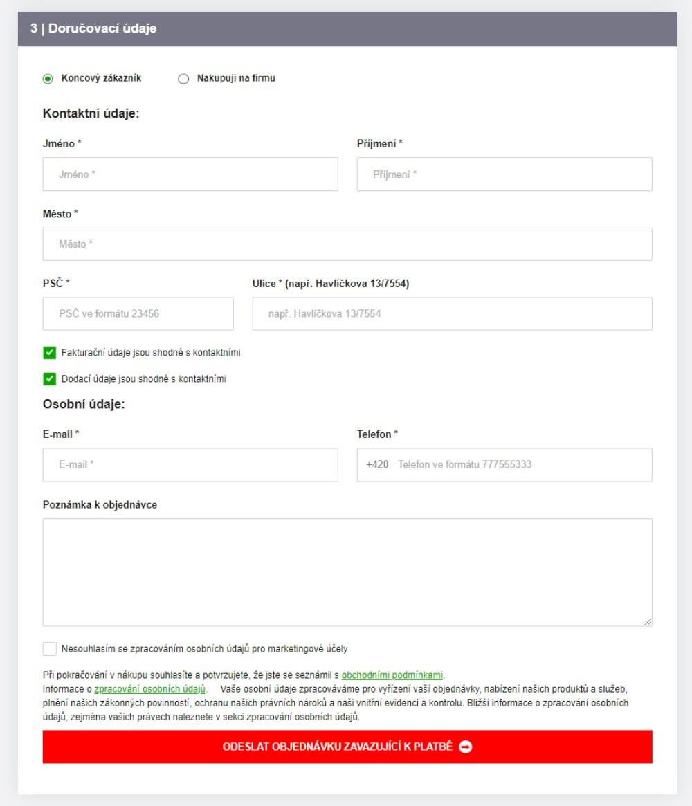 9. Nakonec vyplňte doručovací údaje a odešlete objednávku.
