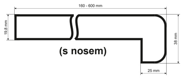 Nos parapetu: výška 38 mm, tloušťka 25 mm, rádius 6 mm