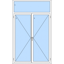 Dvoukřídlé balkonové dveře s nadsvětlíkemod 11 135 KčLevé křídlo otvíravé levé, pravé křídlo otvíravo-sklopné pravé + pevný (fixní) nadsvětlík