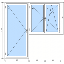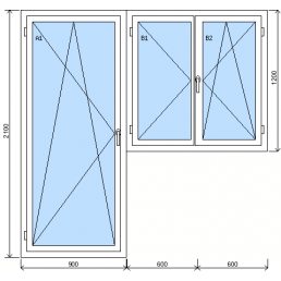 Sestava dvoukřídlého okna a balkonových dveříod 9 577 KčVlevo otvíravo-sklopné balkonové dveře s příčkou levé, vpravo dvoukřídlé okno se štulpem (levé křídlo otvíravé levé, pravé křídlo otvíravo-sklopné pravé)