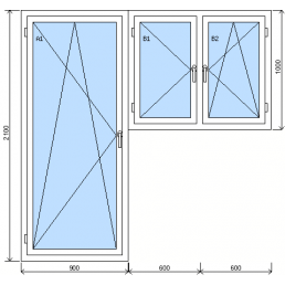 Sestava dvoukřídlého okna a balkonových dveříod 9 577 KčVlevo otvíravé balkonové dveře s příčkou levé, vpravo dvoukřídlé okno se štulpem (levé křídlo otvíravé levé, pravé křídlo otvíravo-sklopné pravé)