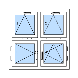 Čtyřkřídlé oknood 7 052 KčDole 2x pevný díl, nahoře 2x otvíravo-sklopné křídlo