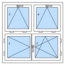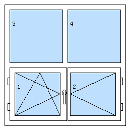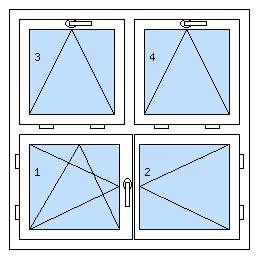 Čtyřkřídlé oknood 8 500 KčDole dvoukřídlé okno se štulpem (levé křídlo otvíravo-sklopné levé, pravé křídlo otvíravé), nahoře 2x pevný (fixní)
