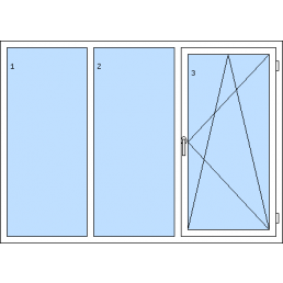 Trojkřídlé oknood 4 640 Kč1. Křídlo otvíravo-sklopné levé, 2. Křídlo pevné (fixní), 3. Křídlo pevné (fixní)