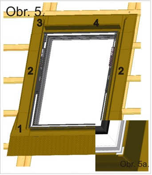 Krok 5 ![]() Při montáži lemování nejdříve vyjměte rámové těsnění Obr.5a. a postupně osaďte jednotlivé díly lemování dle očíslování, viz. Obr.5. POZOR: Chybějící díl číslo 4 může způsobovat netěsnost okna. | Krok 6 ![]() Po osazení jednotlivých dílů lemování vložte zpět rámové těsnění jak je zobrazeno na Obr.6a. POZOR: Důkladná montáž těsnění znamená dokonalou těsnost okna. |