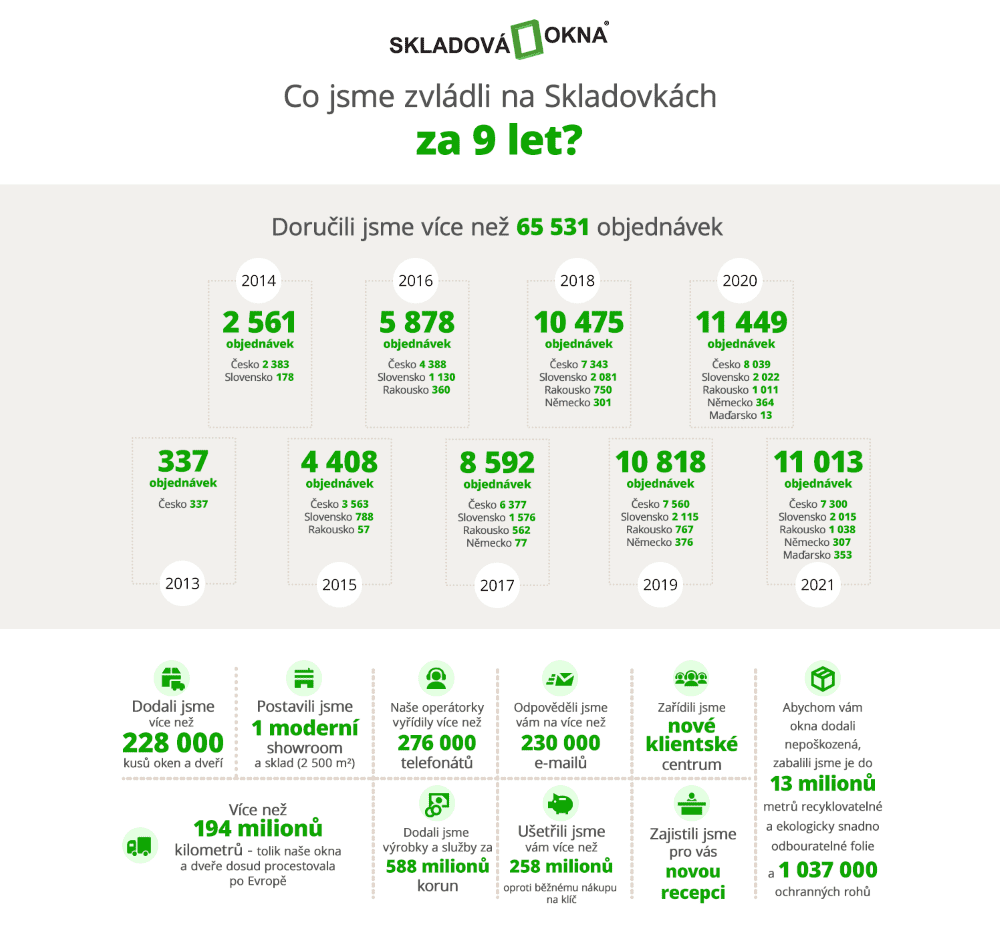 Jako každý rok i letos jsme pro vás připravili grafické shrnutí, co se nám podařilo za 9 let, kdy jsme e-shop založili. Jsou to zajímavá čísla.