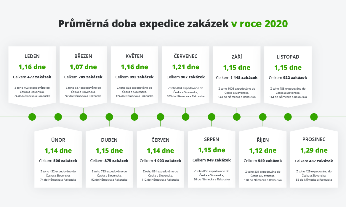 Snažíme se dělat vše proto, aby se nová plastová okna a dveře dostali k vám domů co nejdříve. A to i během stavební sezóny. Podívejte se, v jakých krátkých časech jsme v minulém roce předávali zboží, které bylo skladem, dopravcům.