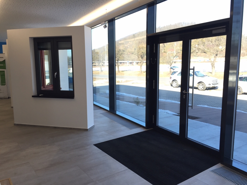 - moderní klimatizovaný showroom – k vidění jsou různé typy oken a dveří, názorný průřez dvojsklem a trojsklem, barevné varianty profilů, typy zasklení, nejrůznější příslušenství (parapety, stínící technika) a také moderní novinky, například plně automatické vchodové dveře s otevíráním na otisk prstu a správou uživatelů na dálku prostřednictvím chytrého mobilního telefonu