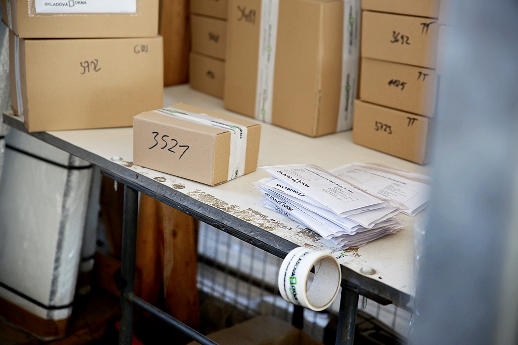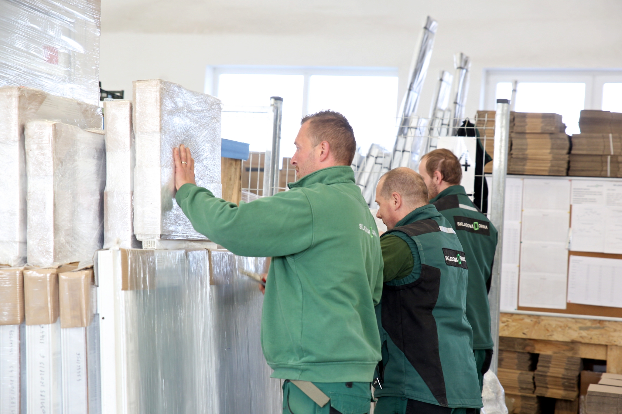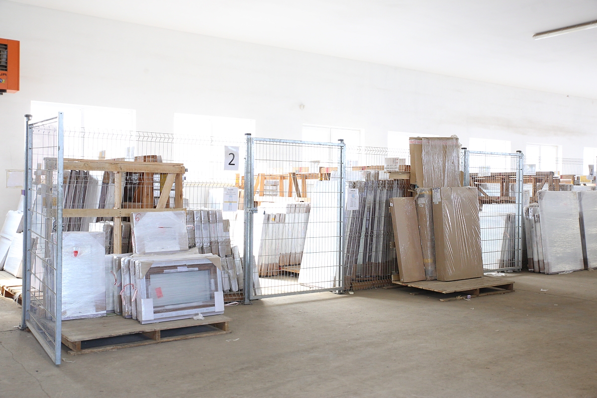 - sklad – na celkové ploše 2 500 m² je na 140 typů plastových oken a dveří v počtu kolem 1 000 kusů, vše je přehledně roztříděné do kójí, aby expedice byla co nejrychlejší