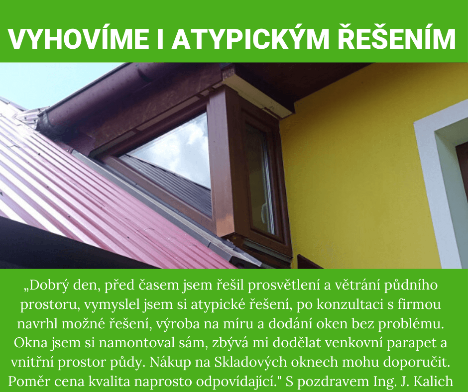 - „Dobrý den, předem moc děkuji za rychlé a perfektní dodání všech objednávek. Vše proběhlo v pořádku a hlavně rychle a bez žádné chybičky. Hodně nám to pomohlo při zkrášlování našeho nového domečku který jsme si celý předělávali vlastníma ručička. Všechny objednané okna vždy perfektně sedly na míru. A hlavně je super že je máte skladem a rychle je expedujeme k zákazníkovi. Přeji hodně dalších prodejů a plno spokojených zákazníků. Budu jen doporučovat.” S pozdravem Szebesta