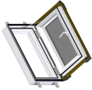střešní plastový výlez. V podstatě se jedná o střešní okno, které se otevírá do strany až o 90°, a umožní tak