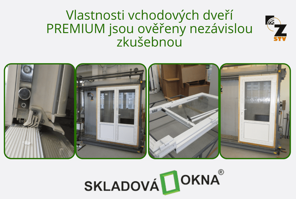 Nedávno jsme ve Zkušebně stavebně truhlářských výrobků, která funguje pod Mendelovou univerzitou v Brně, testovali kvalitu našich plastových oken a balkonových dveří. Nyní přinášíme také aktuální výsledky z testování hlavních a vedlejších vchodových dveří PREMIUM.Skladem máme vedlejší vchodové dveře s dvojsklem Ug=1.1 W/m²K, panelem 25 mm, nebo kombinace skla a panelu. Standardně je u těchto dveří studený meziskelní rámeček Metal Union a tyto dveře dosahují celkového prostupu Ud=1,3 W/m²K.