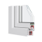 K dispozici jsou vám okna REHAU Smartline+ s dvojsklem, která jsou v dekoru zlatý dub. Nebo můžete zvolit okna vyrobená z okenního profilu REHAU SYNEGO AD. Ta mají perfektní izolační schopnosti a splňují normy pro pasivní dřevostavby. Tepelný prostup celým oknem je Uw=0,78 W/m²K (při použití trojskla a plastového rámečku). Okna jsou ideální do nízkoenergetických a pasivních domů a využít můžete i dotaci na novostavbu.