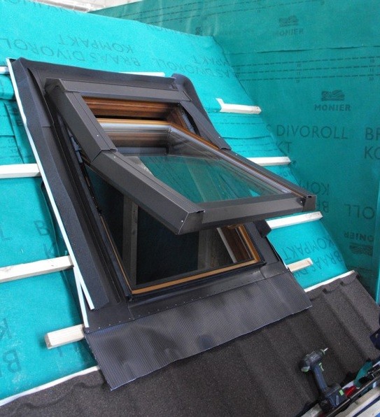 Střešní okna lze instalovat do všech šikmých střech, jen je právě potřeba vybrat vhodné lemování. Pro vlnité krytiny prodáváme vlnité lemování F s pružným prvkem, pro spojení s plochými krytinami (např. bitumenový šindel) je určeno lemování P.