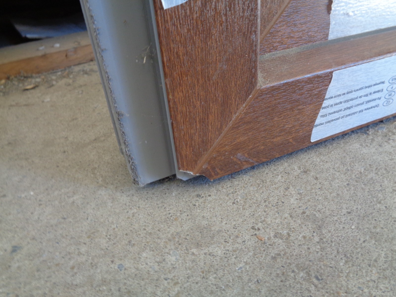 Poškozené, okno má poškrábaný rám a ulomený roh rámu.