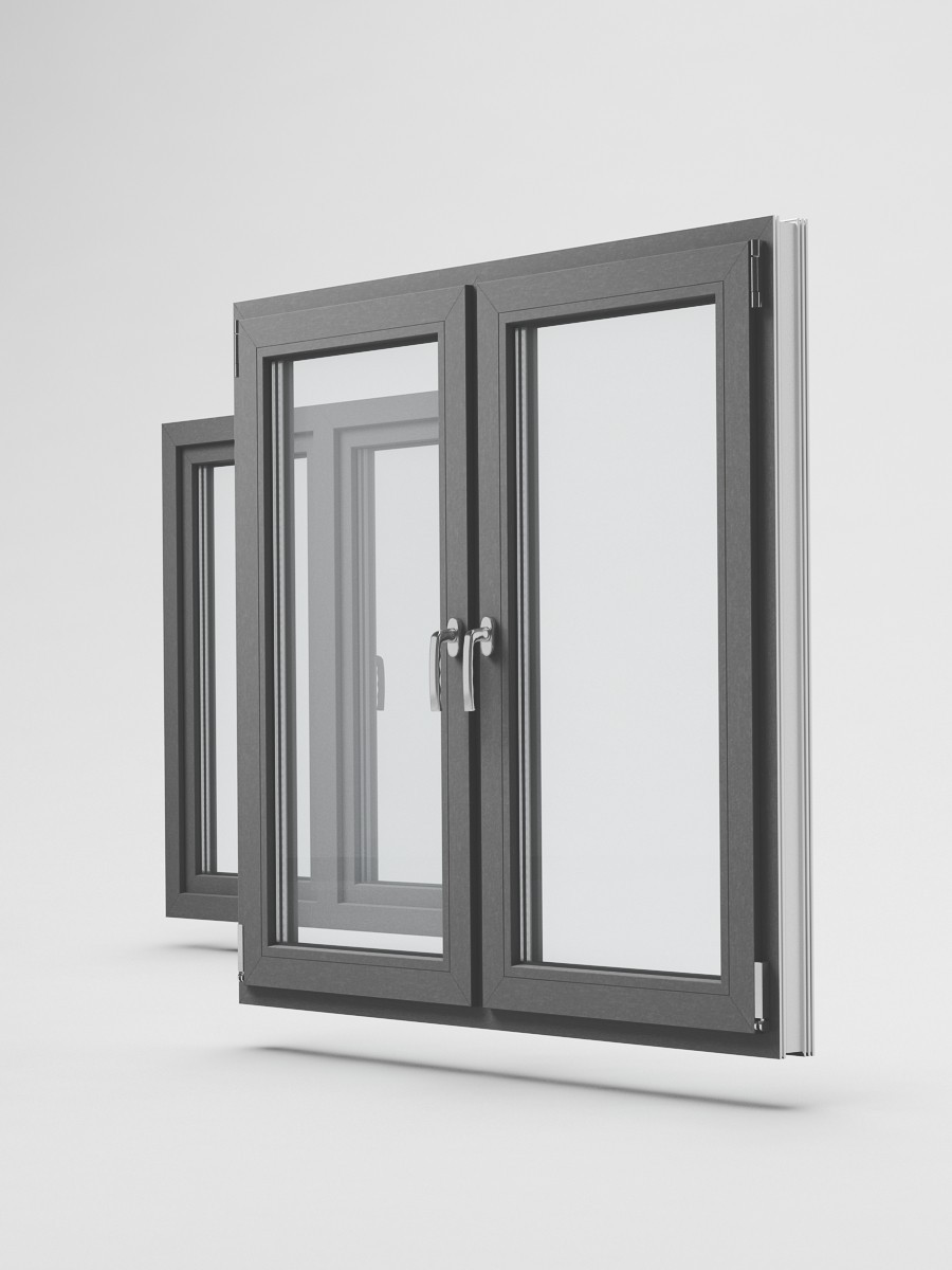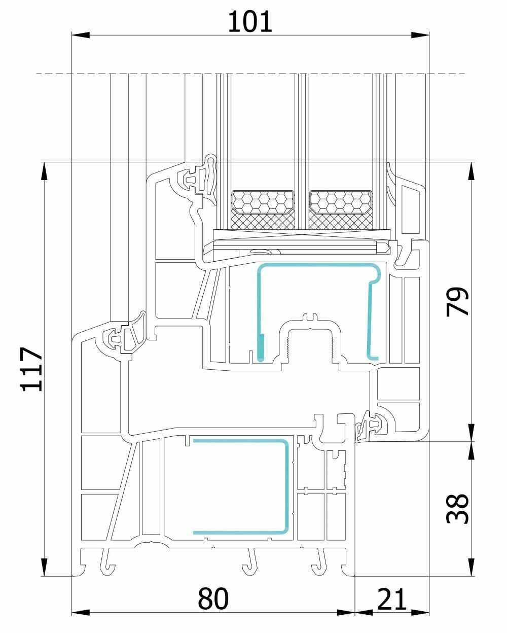 Stavební hloubka 80 mm (vyšší statická pevnost). V rámech i křídlech jsou celoobvodové pozinkované výztuže odolné proti korozi.
