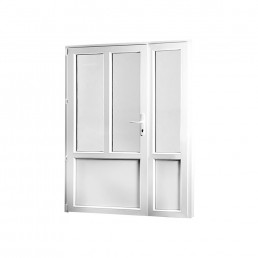Dvoukřídlé plastové vedlejší dveře REHAU Smartline+ jsou vhodné ke vstupu na zahradu, do garáže nebo jako zadní vstup do provozoven a obchodů. U rodinných domů se dají použít i jako klasické vchodové dveře, ale nedoporučujeme je do veřejných budov či bytových domů, kde je vyšší frekvence pohybu. Oproti hlavním vstupním dveřím, které dodáváme na objednávku přes konfigurátor, jsou levnější, ale nemají široké křídlo a jdou otevírat pouze dovnitř. Vedlejší dveře nabízíme o rozměrech: šířka 138 cm, výška 208 cm, průchozí šířka je 124 cm.