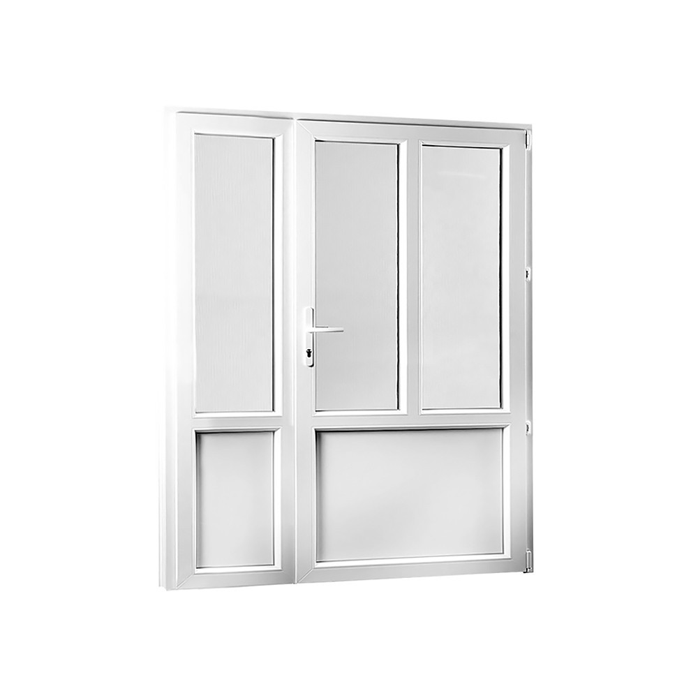 Dvoukřídlé plastové vedlejší dveře REHAU Smartline+ jsou vhodné ke vstupu na zahradu, do garáže nebo jako zadní vstup do provozoven a obchodů. U rodinných domů se dají použít i jako klasické vchodové dveře, ale nedoporučujeme je do veřejných budov či bytových domů, kde je vyšší frekvence pohybu. Oproti hlavním vstupním dveřím, které dodáváme na objednávku přes konfigurátor, jsou levnější, ale nemají široké křídlo a jdou otevírat pouze dovnitř. Vedlejší dveře nabízíme o rozměrech: šířka 158 cm, výška 208 cm, průchozí šířka je 144 cm.