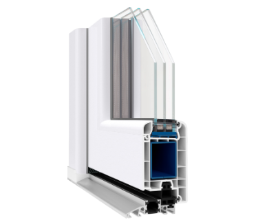 Jednokřídlé plastové vedlejší dveře WDS AD 70 mm jsou částečně prosklené a otevírají se ven – tím se odlišují od ostatních skladových venkovních dveří REHAU Smartline+.