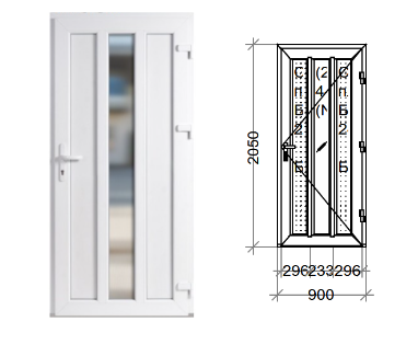 Dveře jsou k dispozici pouze v bílé barvě a v jednom rozměru. Svou konstrukcí jsou určeny ke vstupu na terasu, zahradu, do garáže nebo jako zadní vstup do provozoven a obchodů.
