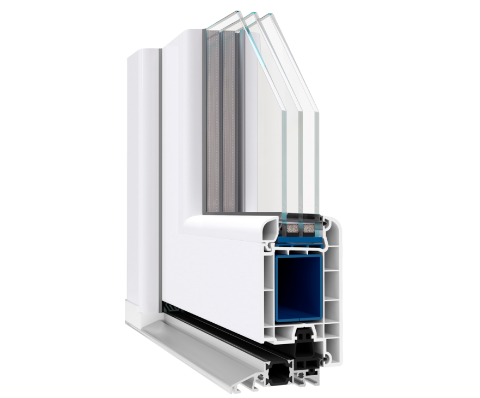 Profil má stavební hloubku 70 mm.Pozinkované ocelové výztuhy zajišťují tuhost a stabilitu dveří. Součinitel prostupu tepla dveřmi Ud=1,4 W/m²K. Bílé vedlejší dveře jsou rozděleny na 3 části – dvě třetiny tvoří izolační PVC panel o tloušťce 24 mm a v jedné třetině je izolační mléčné dvojsklo 4-16-4.