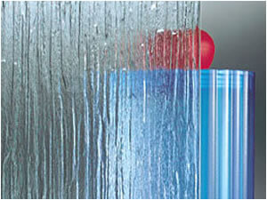 Nad příčkou dvě tabule ornamentního skla kůra čirá, Ug=1.1 (modrá plocha v nákresu).