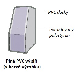 Pod vodorovnou příčkou plná PUR výplň (šedá plocha v technickém nákresu).