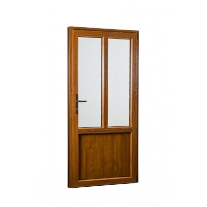 Jednokřídlé plastové vedlejší dveře REHAU Smartline+ jsou vhodné ke vstupu na zahradu, do garáže nebo jako zadní vstup do provozoven a obchodů. U rodinných domů se dají použít i jako klasické vchodové dveře, ale nedoporučujeme je do veřejných budov či bytových domů, kde je vyšší frekvence pohybu. Oproti hlavním vstupním dveřím, které dodáváme na objednávku přes konfigurátor, jsou levnější, ale nemají široké křídlo a jdou otevírat pouze dovnitř. Vedlejší dveře nabízíme o rozměrech: šířka 88 cm, výška 208 cm, průchozí šířka je 74 cm.Dveře jsou z vnitřní strany bílé, z venkovní strany je použita fólie v dekoru zlatý dub. Součinitel prostupu tepla dveřmi Uw=1,4 W/m²K.